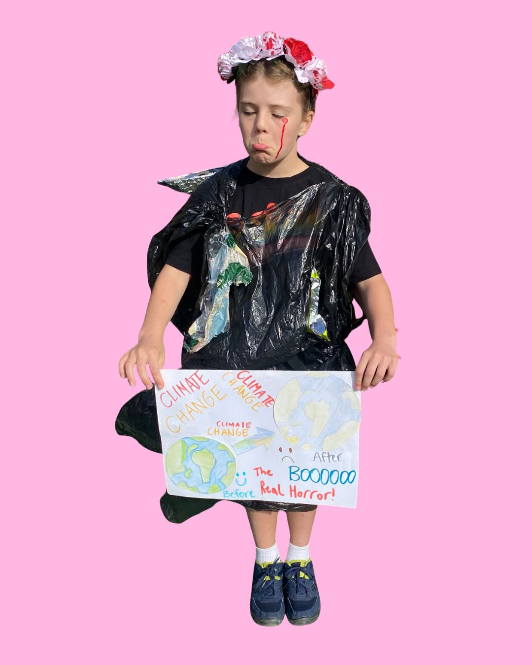 Children can also choose to create costumes that share a social or environmental message. The lovely Stella (pictured below) dressed up as a dying Earth for Halloween last year, a powerful and scary costume indeed.